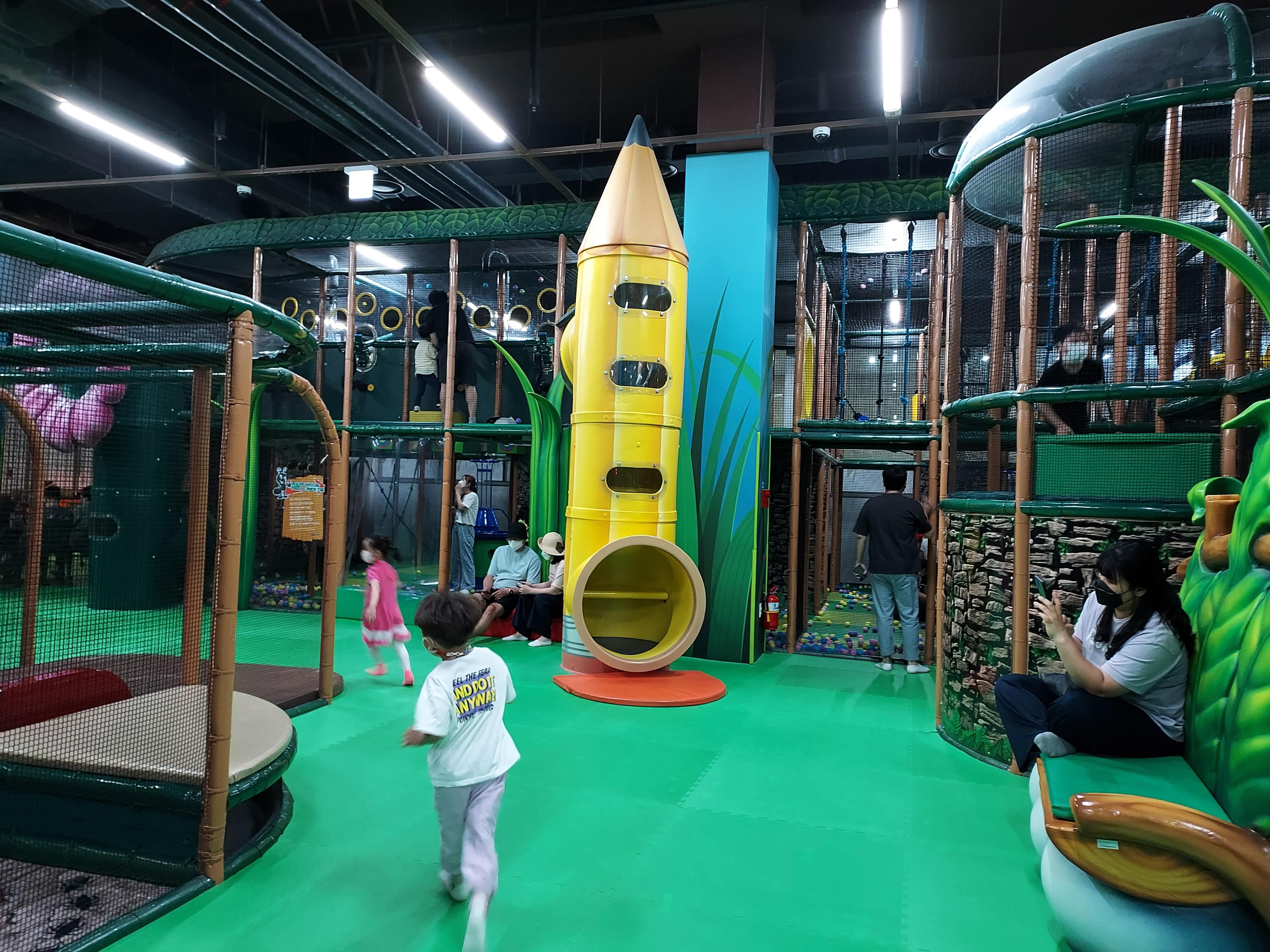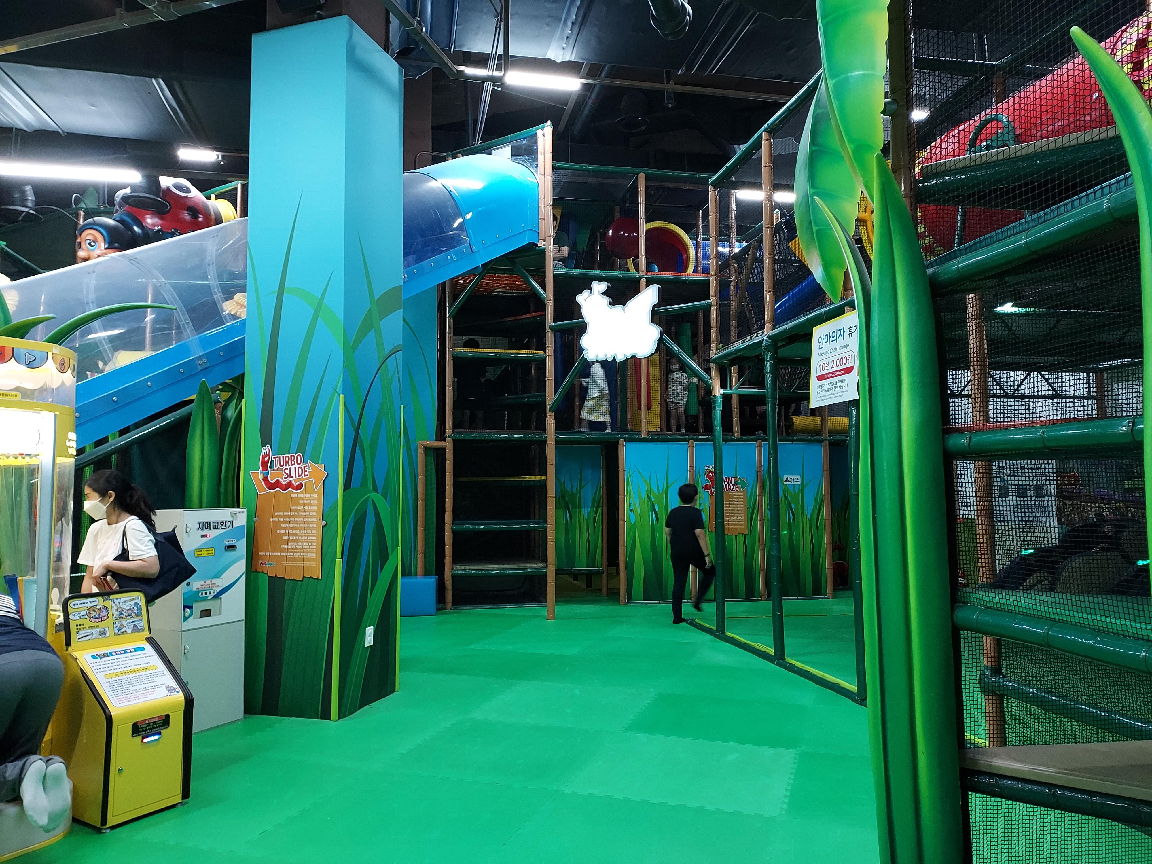 일반 동네 키즈카페보다 5배정도는 커요~ 아이들이 무지 좋아하지만 5세 미만이라면 부모중 1명은 졸졸 따라다녀야 해서 엄마,아빠들이 힘들 수 있어요. 한 6세는 되야 혼자 잘 놀 수 있을거 같더군요~
