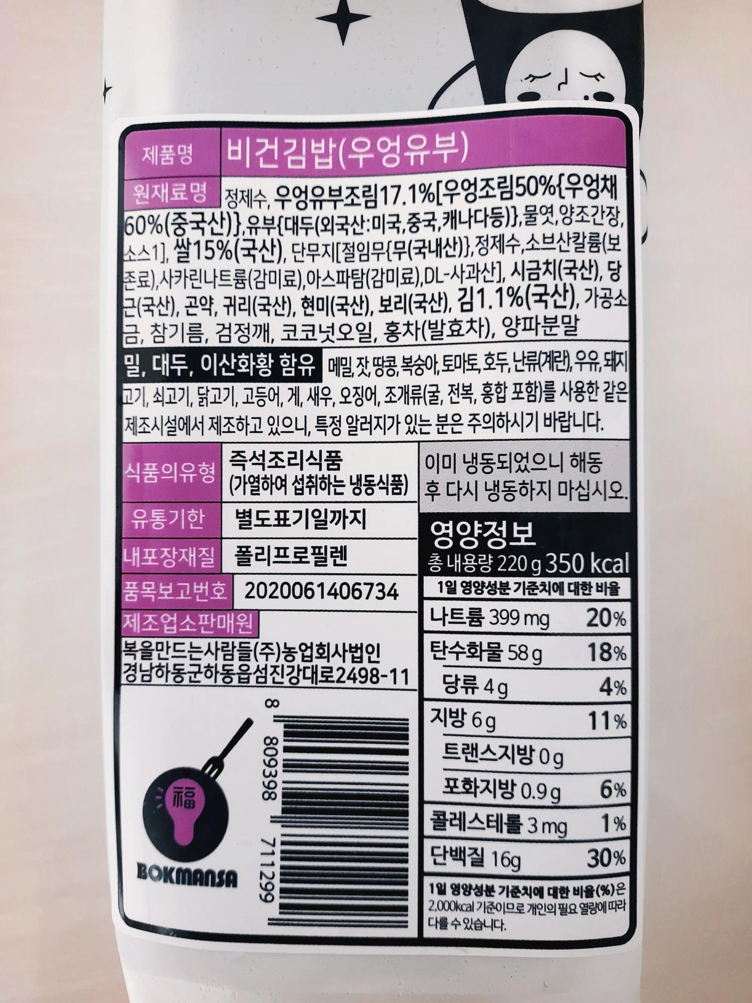 간편하게 전자렌지에 돌려서 맛있는 비건김밥을 먹을 수 있어 좋았어요~
