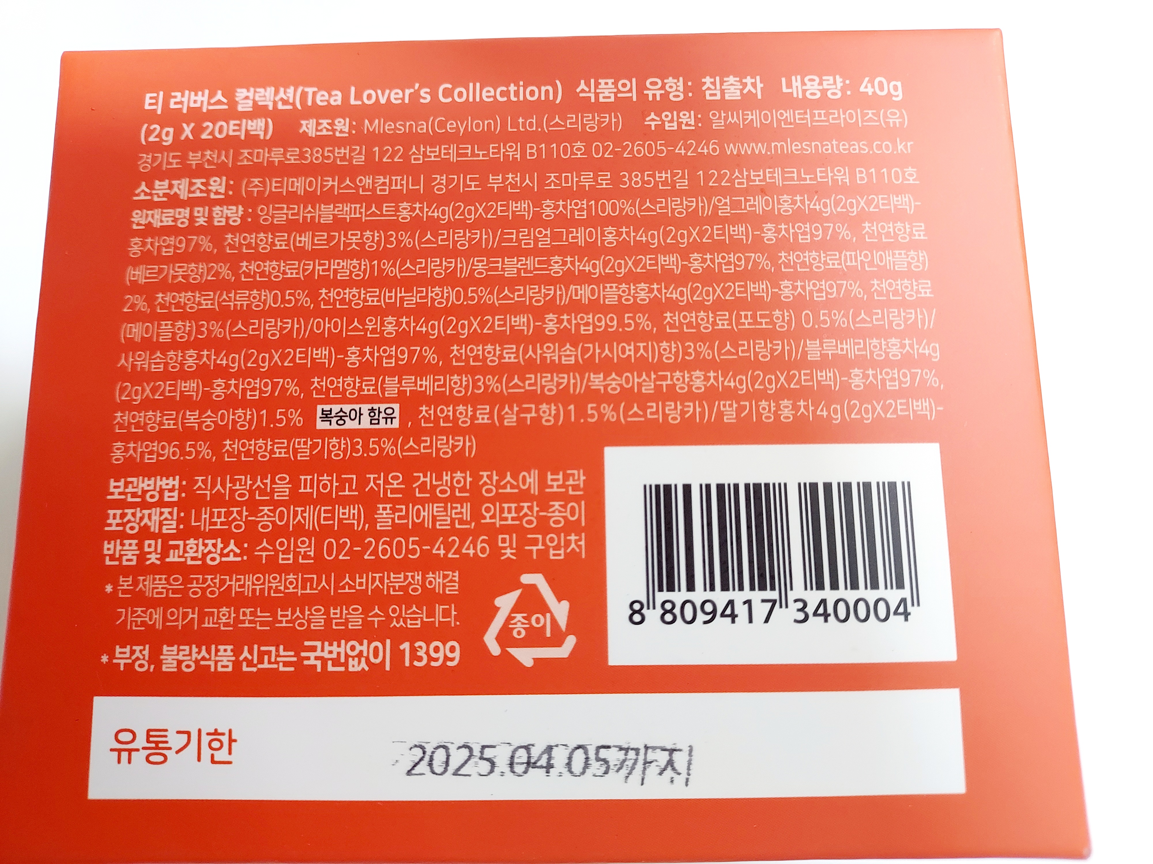 원재료에는 홍차잎과 천연향료가 첨가되었습니다.
