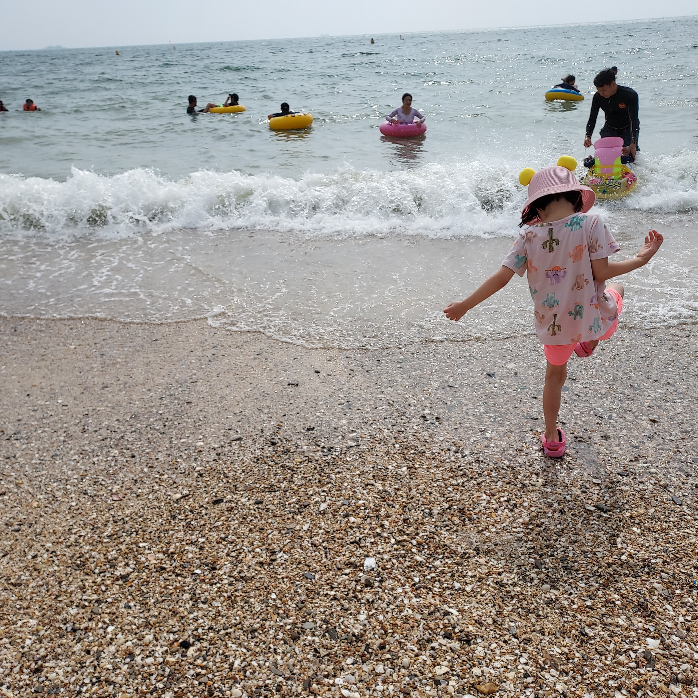 비싸서 그냥 돗자리 피고 양산 들고 있는 것으로 하고 아이는 신나게 바닷물을 만끽하고 놀았습니다.