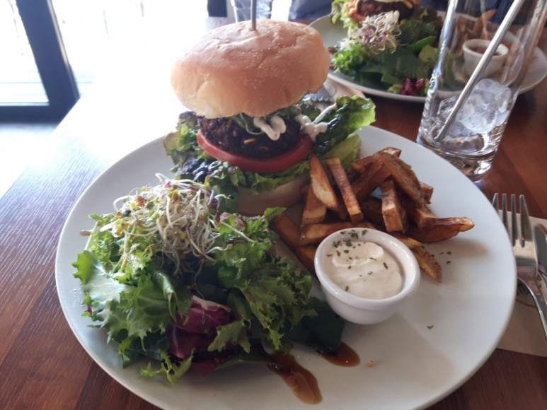 렌틸콩 패티는 고기처럼 씹는 맛이 있거나 육즙은 없으나 두부처럼 부드럽고 콩맛이 강하게 났어요. 개인적으로는 속이 부담스럽지 않고 부드럽고 깔끔한 맛이어서 좋았어요~^^