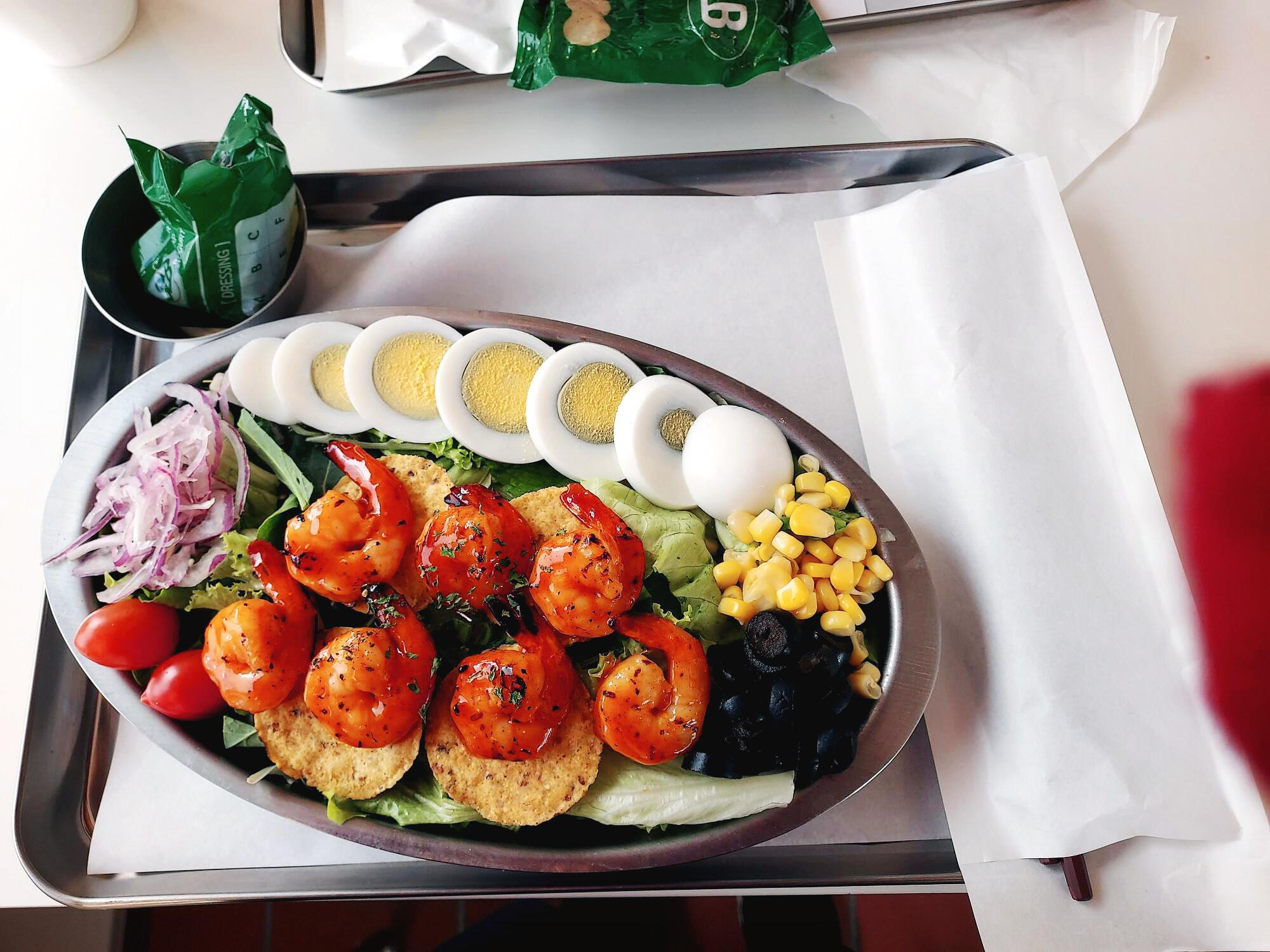 제가 시킨건 '칠리 쉬림프 샐러드' 이고 소스도 별도로 고를 수 있어요.