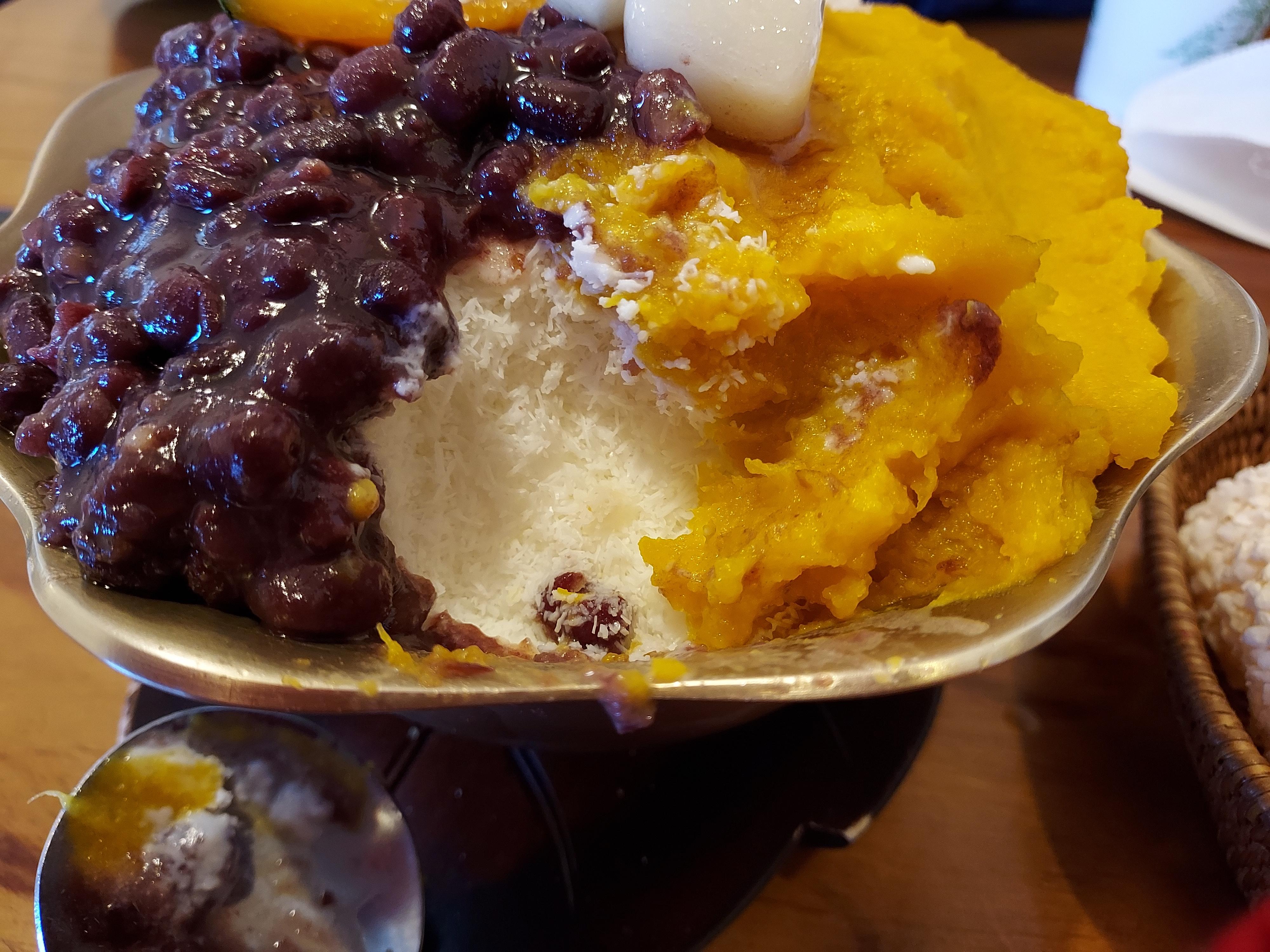 단호박과 팥이 반반씩 어우러져 있습니다.