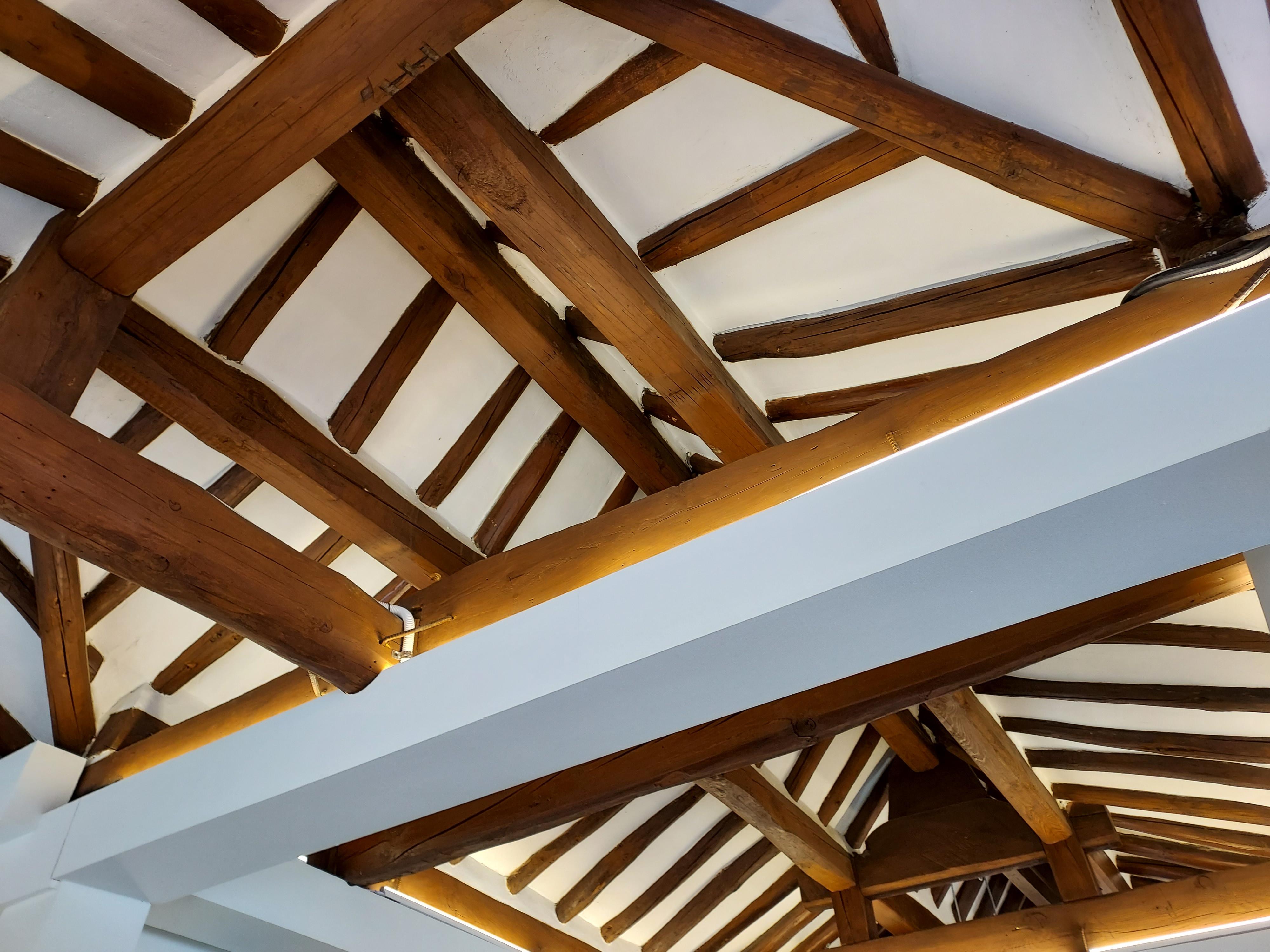 천장을 찍은 모습입니다. 서구적이고 세련된 바깥모습과는 다르게 천장이 한옥느낌이 나네요~^^